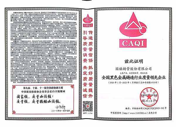 • 全國黑色金屬鑄造行業質量領先企業